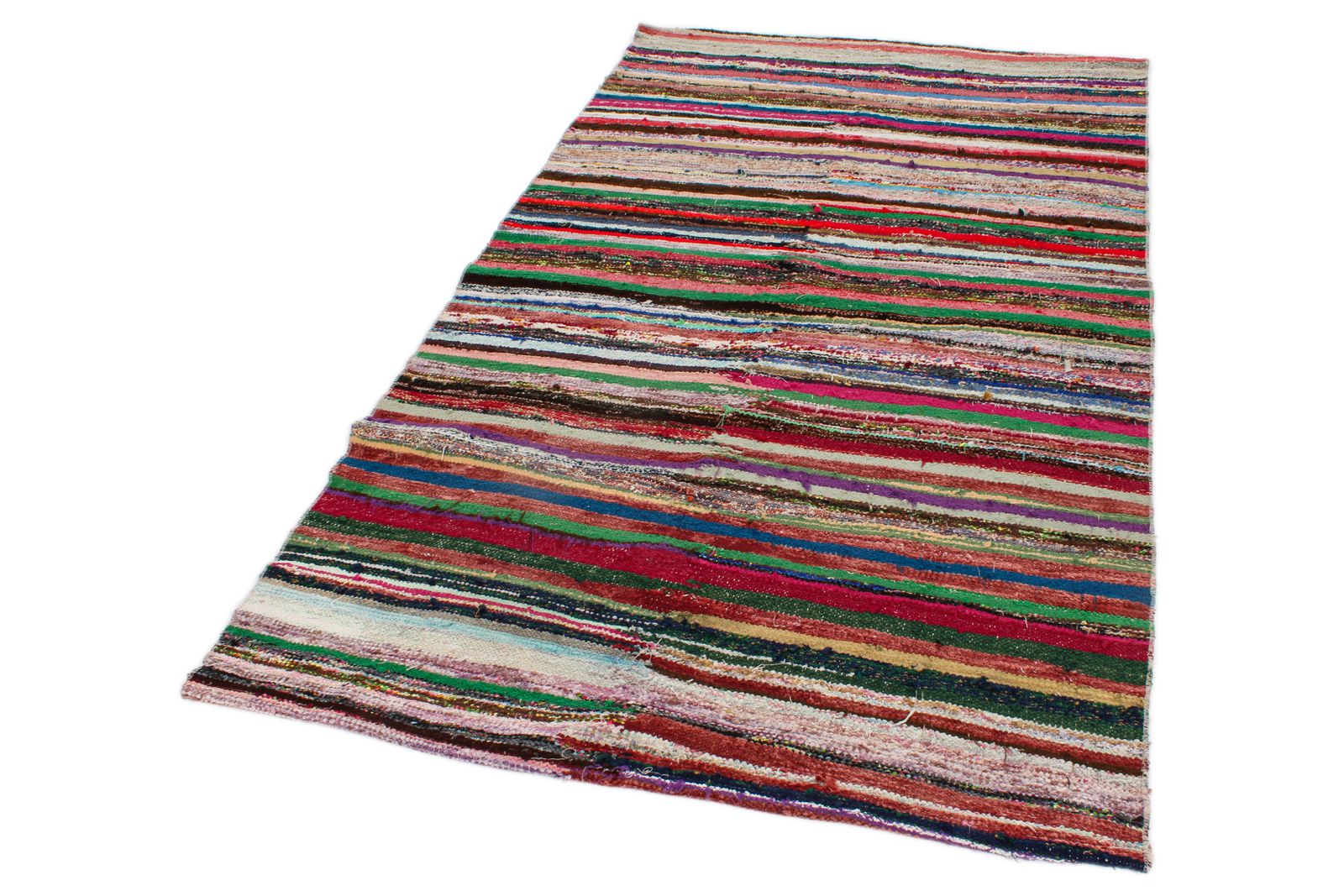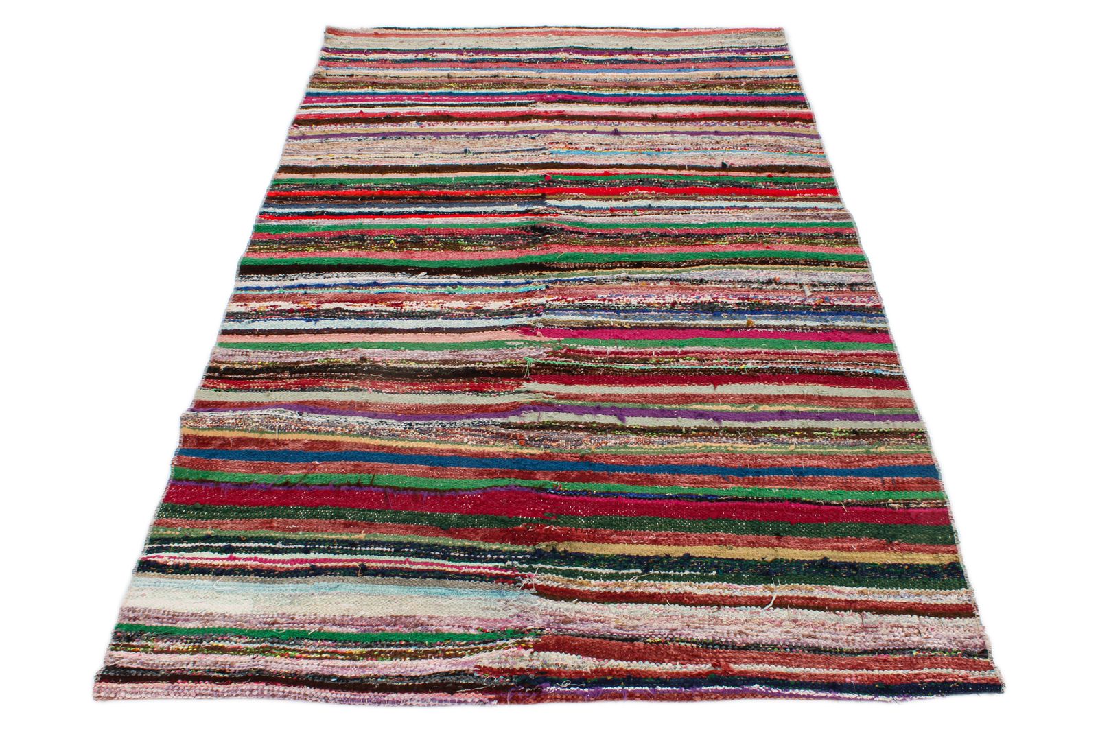 4x7 Multicolor Turkish Tribal Rug Handknotted Wool Vintage Design Turkish Rug Handmade Distressed Tribal, Floral Rug