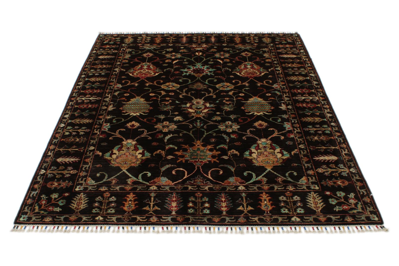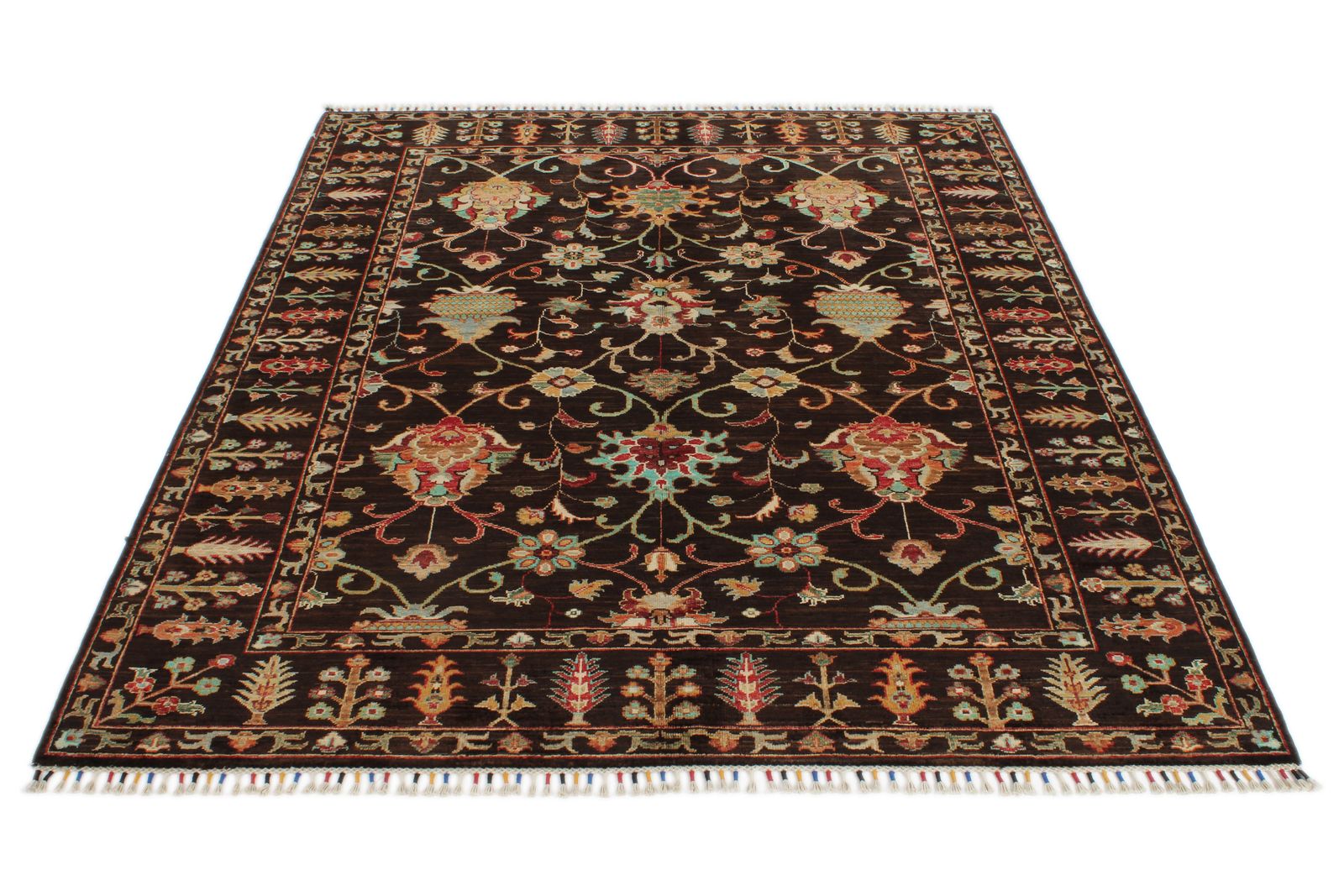 5x7 Dark Brown and Multicolor Turkish Tribal Rug