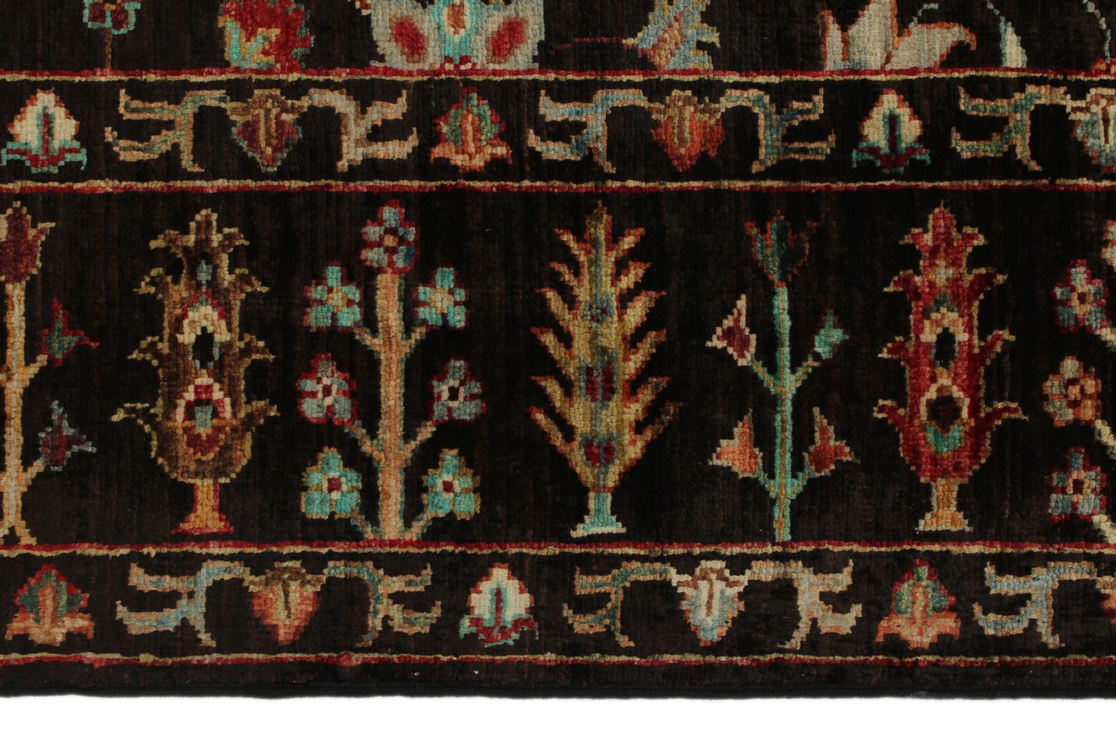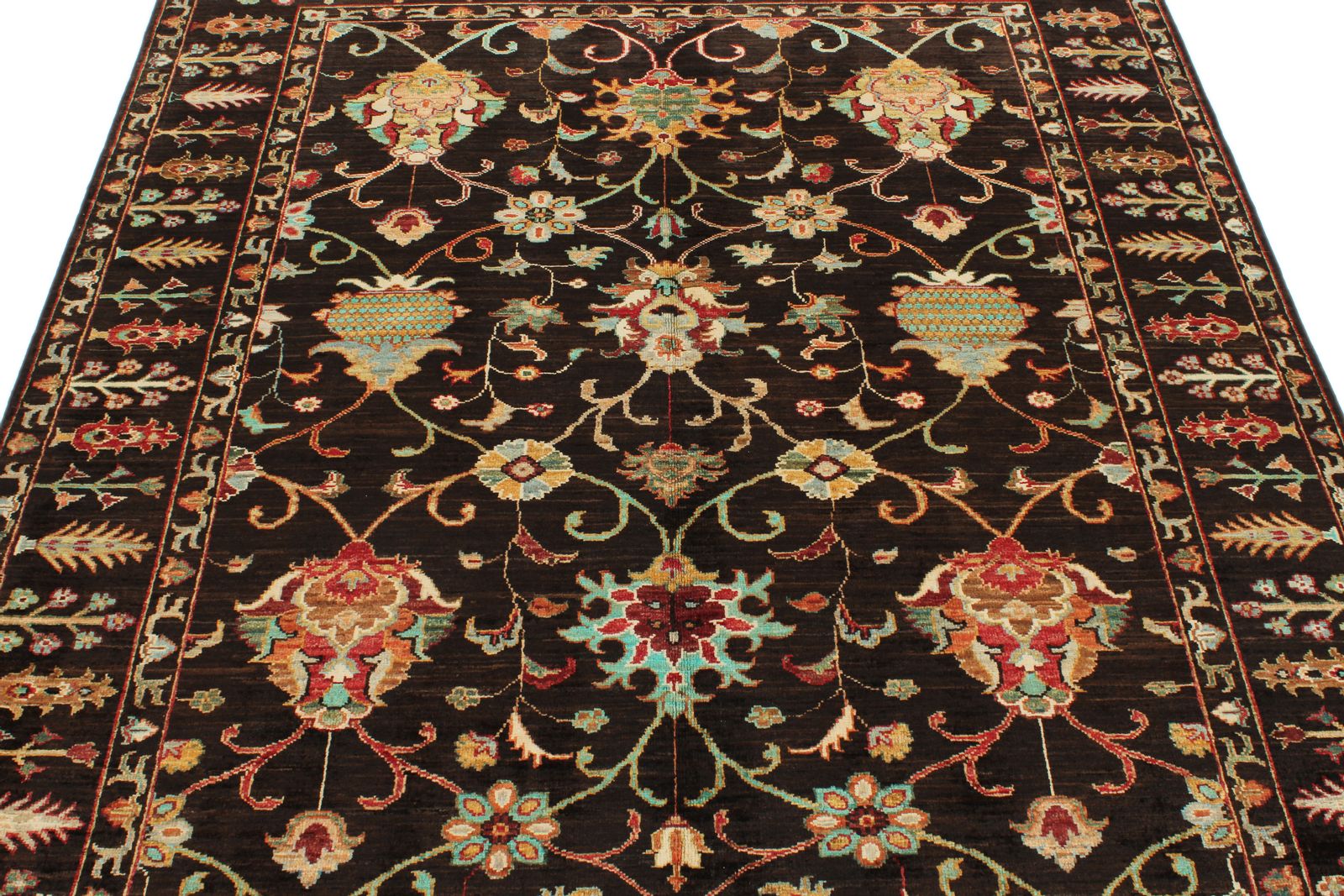 5x7 Dark Brown and Multicolor Turkish Tribal Rug Handknotted Wool Vintage Design Turkish Rug Handmade Distressed Tribal, Floral Rug