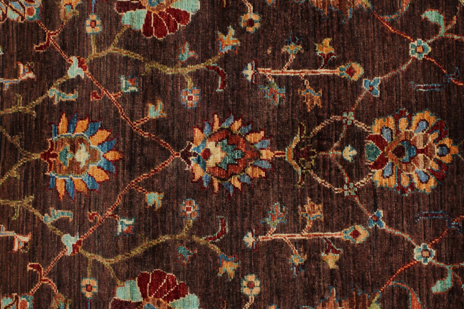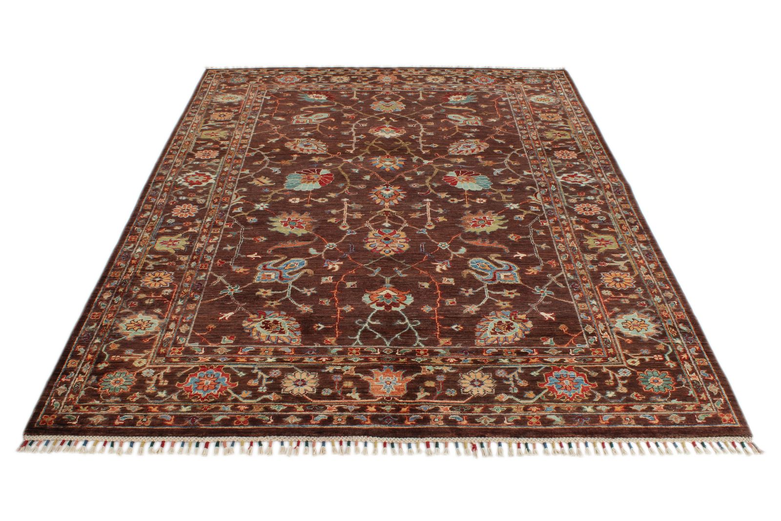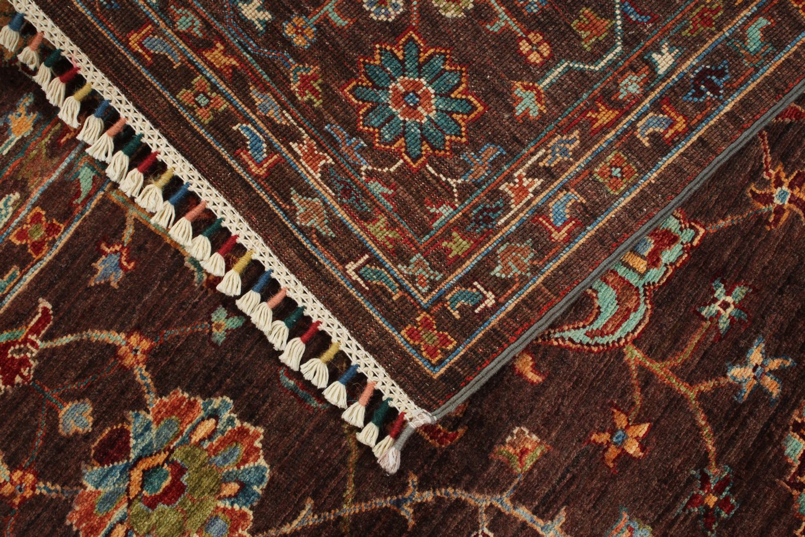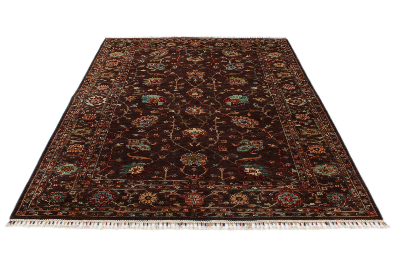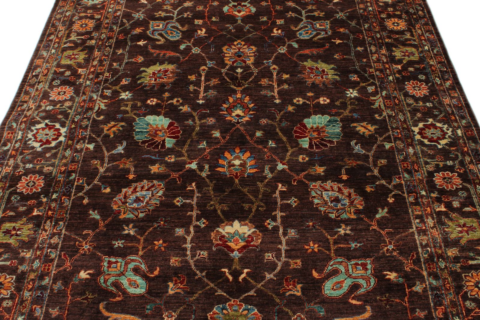 6x8 Dark Brown and Multicolor Turkish Tribal Rug