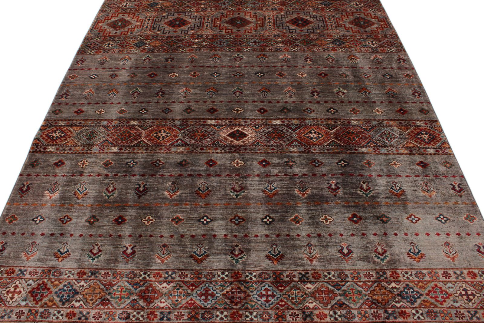 Khorjin rugs are an exotic and unique addition to any home. Their name comes from the word "khorjin," which means saddlebag, as they were originally woven as utilitarian bags to carry belongings on horseback. These vintage rugs are handcrafted by skilled artisans in the tribal areas of Anatolia, featuring striking geometric designs and bold color combinations. Khorjin rugs are made with high-quality wool and are known for their durability and sustainability, making them an excellent home. Each rug is one of a kind, and no two are exactly alike, adding a touch of authenticity and charm to any room. With a rich history and unique beauty, Khorjin rugs are a timeless piece of art for any lover of Oriental decor.