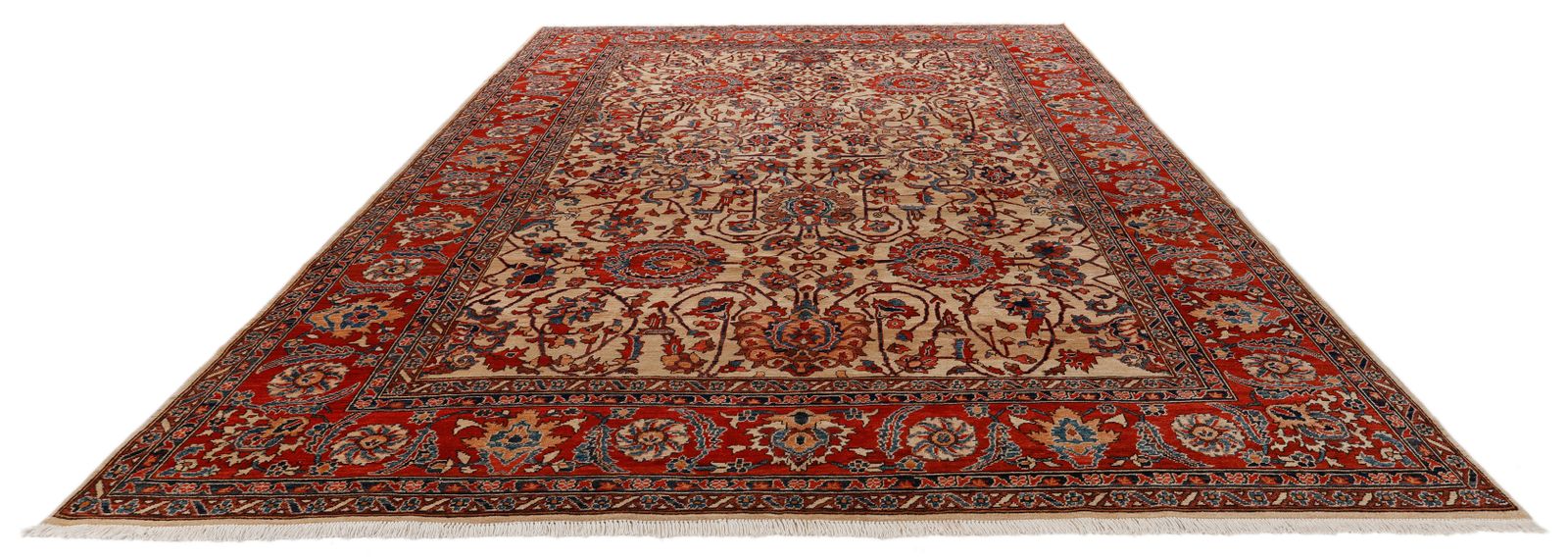 10x14 Ivory and Red Anatolian Traditional Rug Handknotted Wool Vintage Design Turkish Rug Handmade Distressed Traditional, Floral Rug