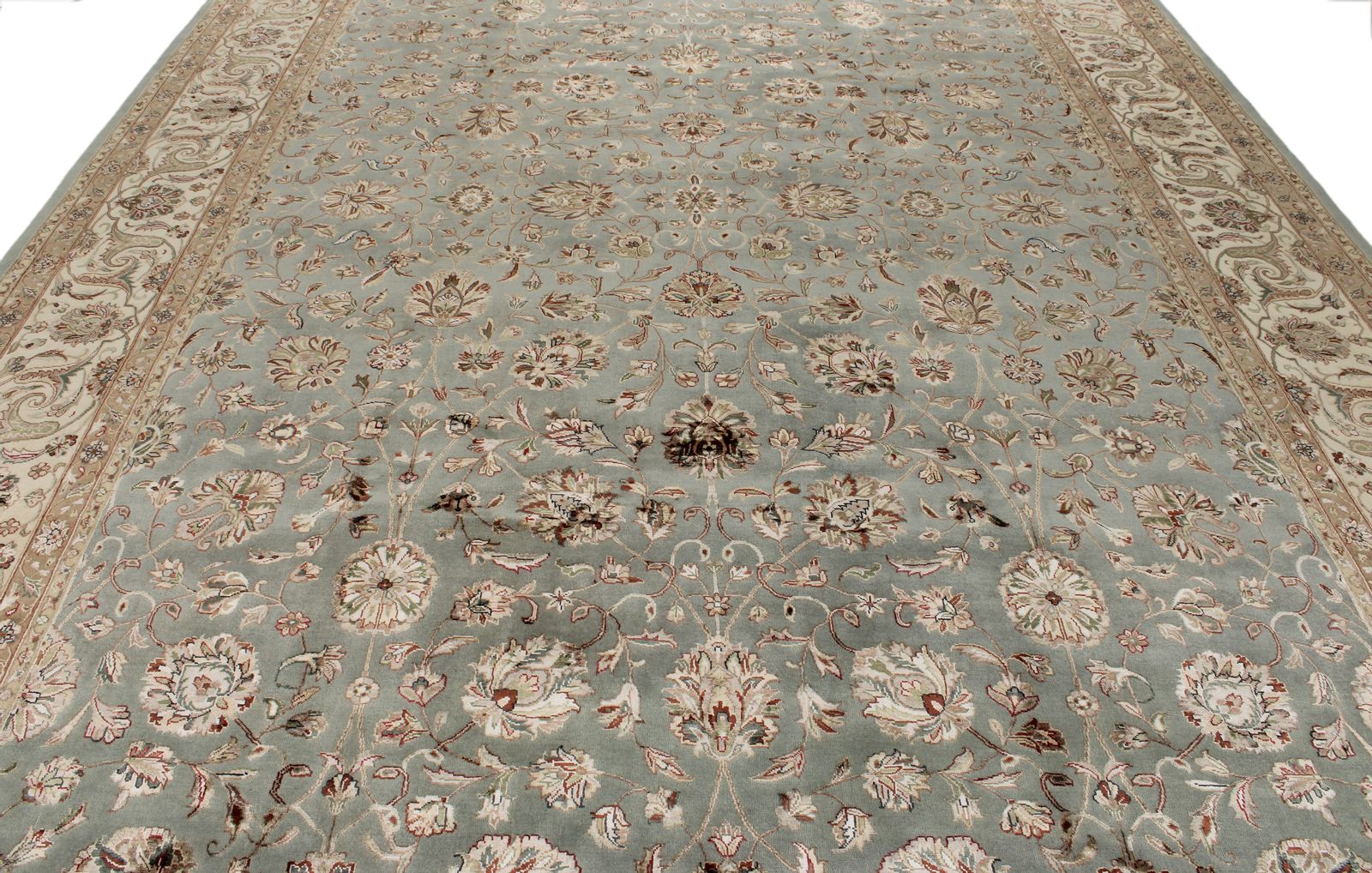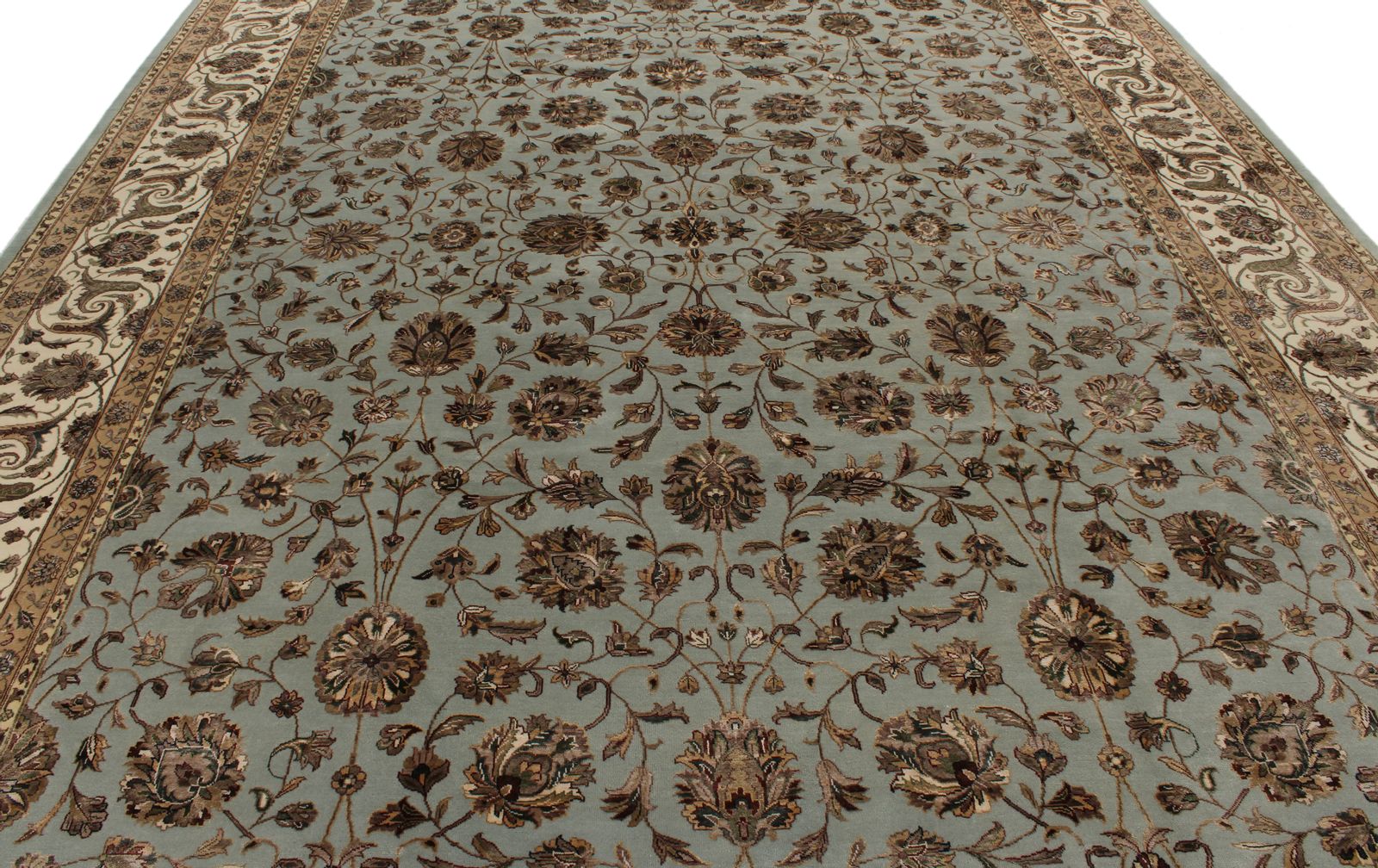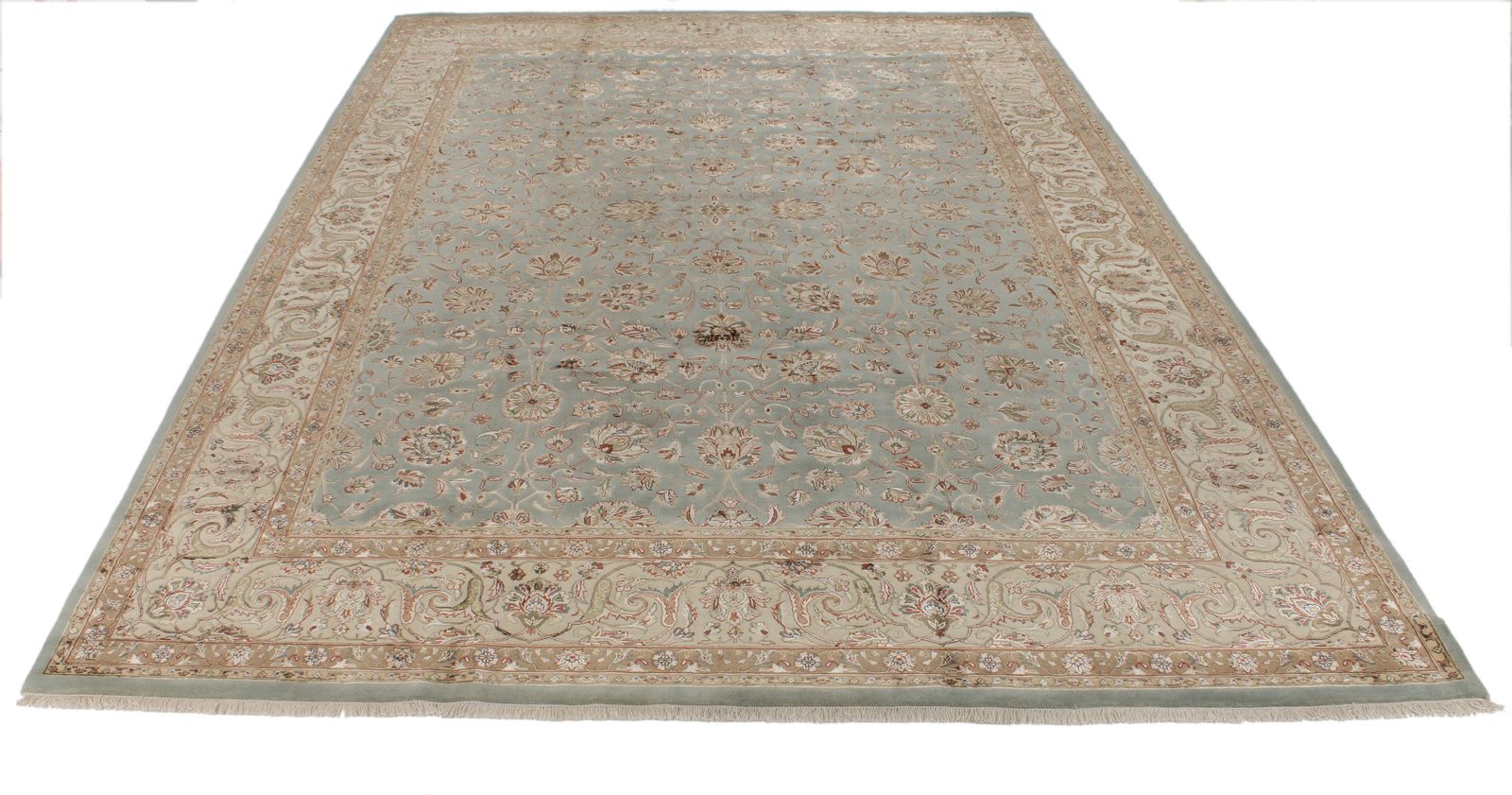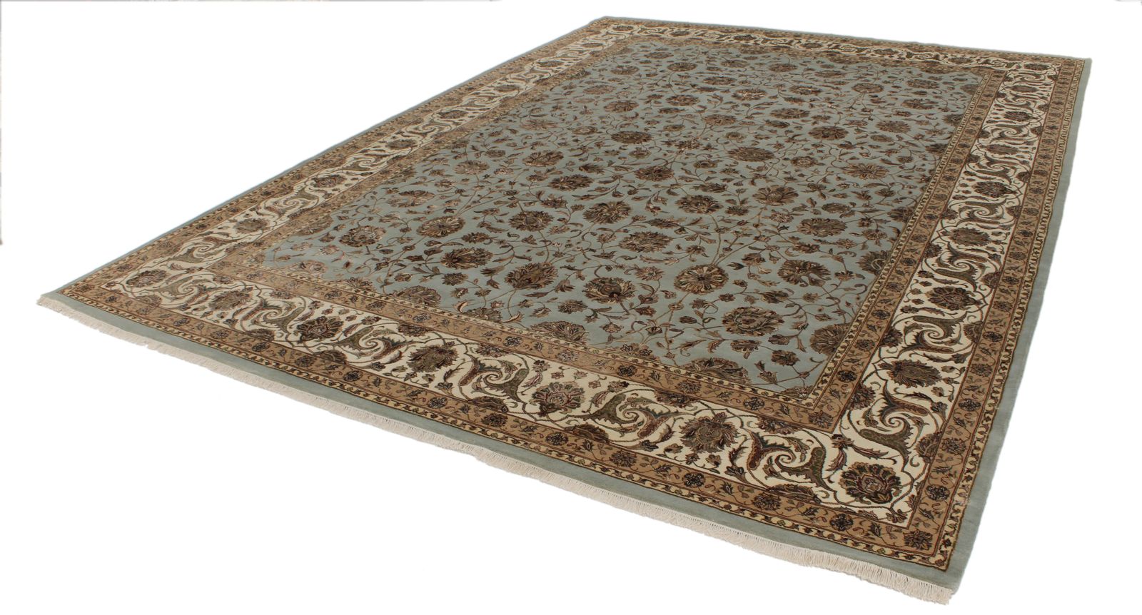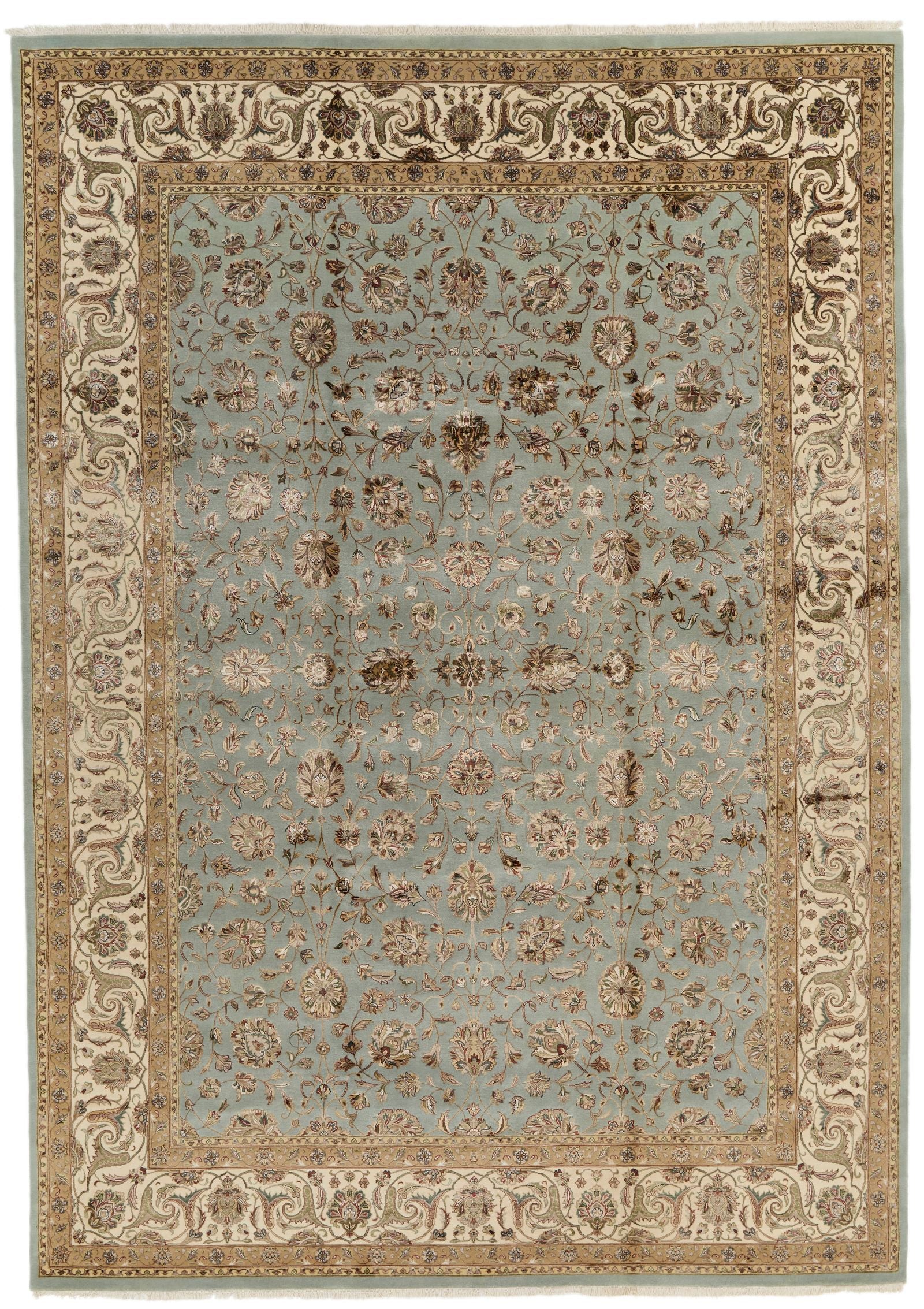 10x14 Light Blue and Ivory Turkish Silk Rug
