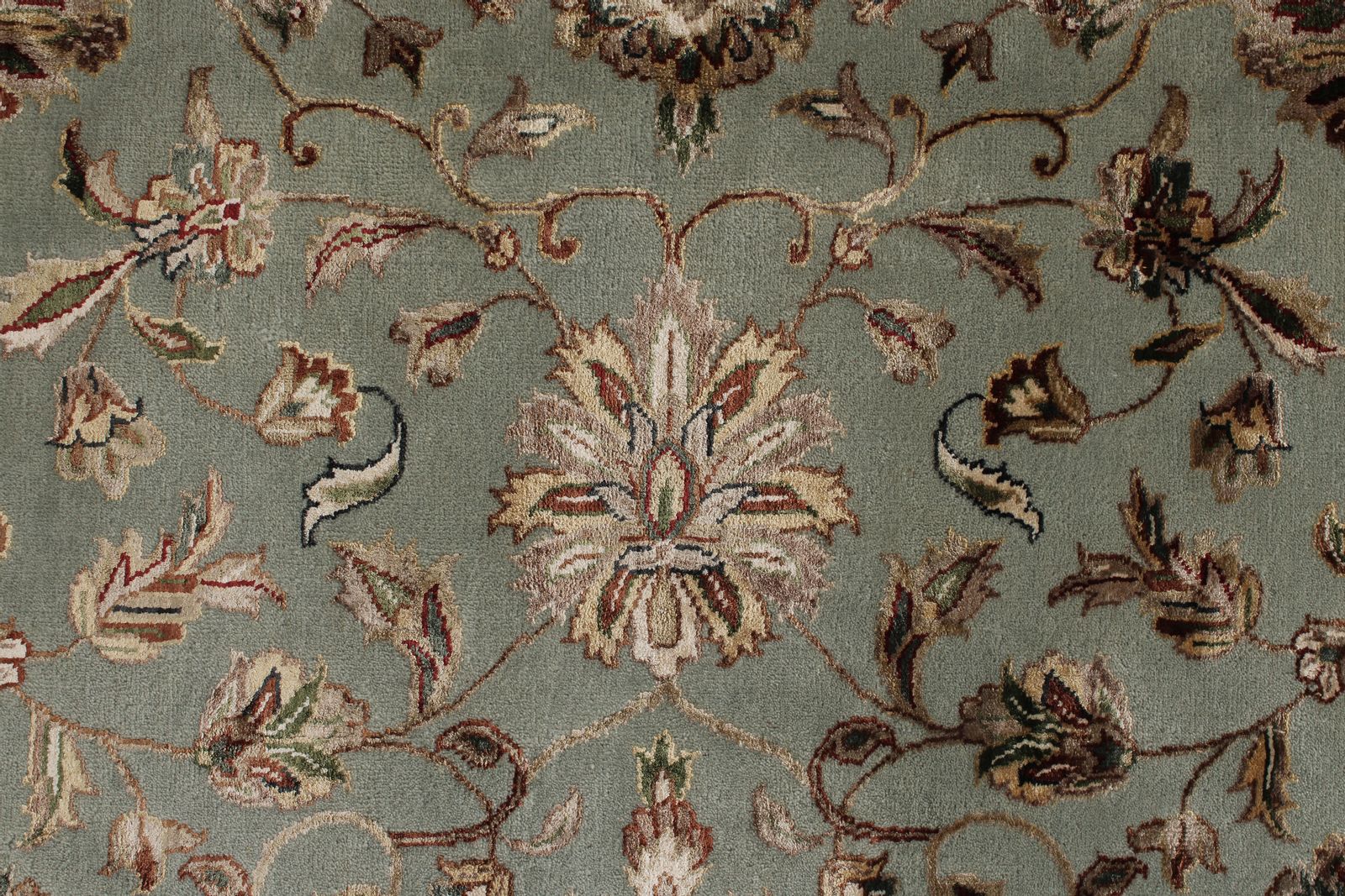 10x14 Light Blue and Ivory Turkish Silk Handknotted Wool Vintage Design Turkish Rug Handmade Distressed Silk, Floral Rug