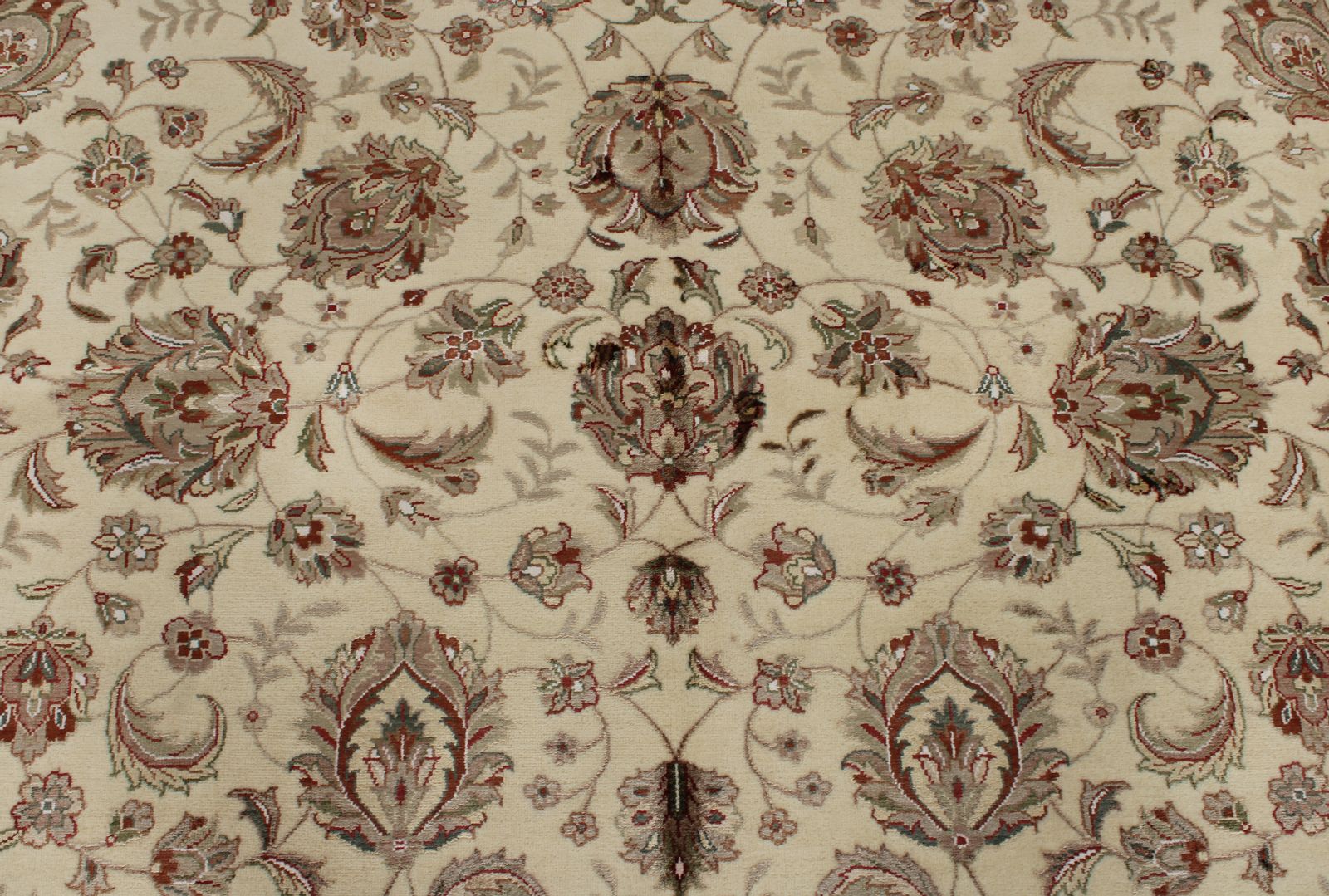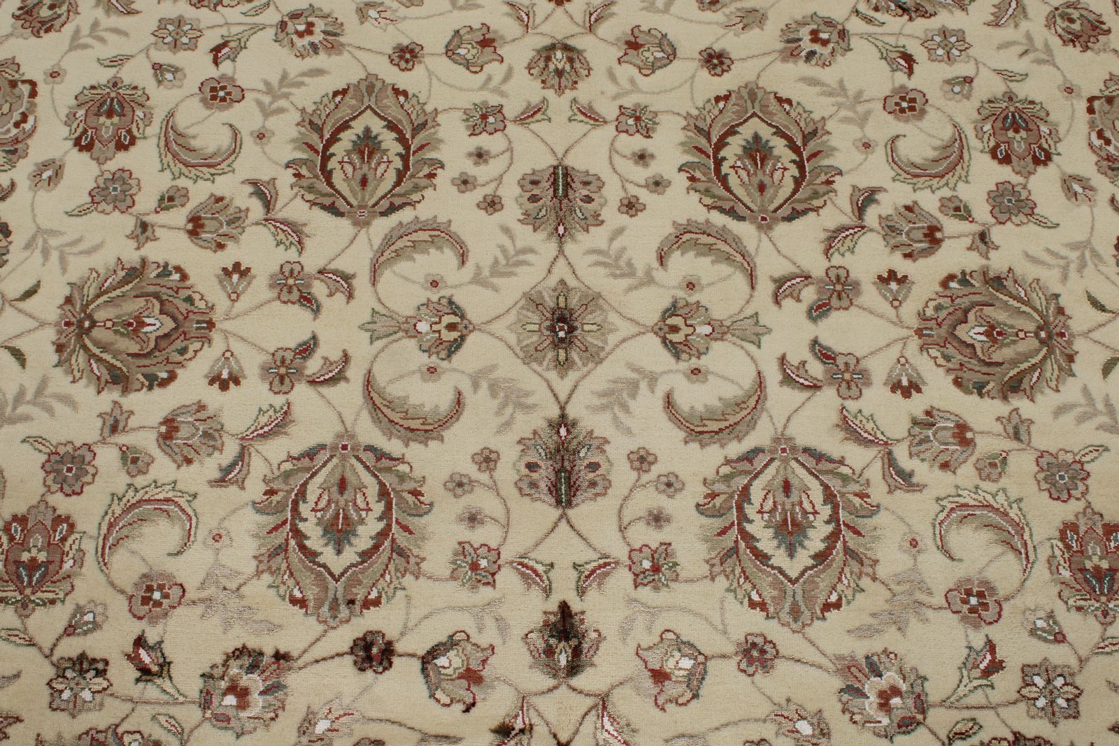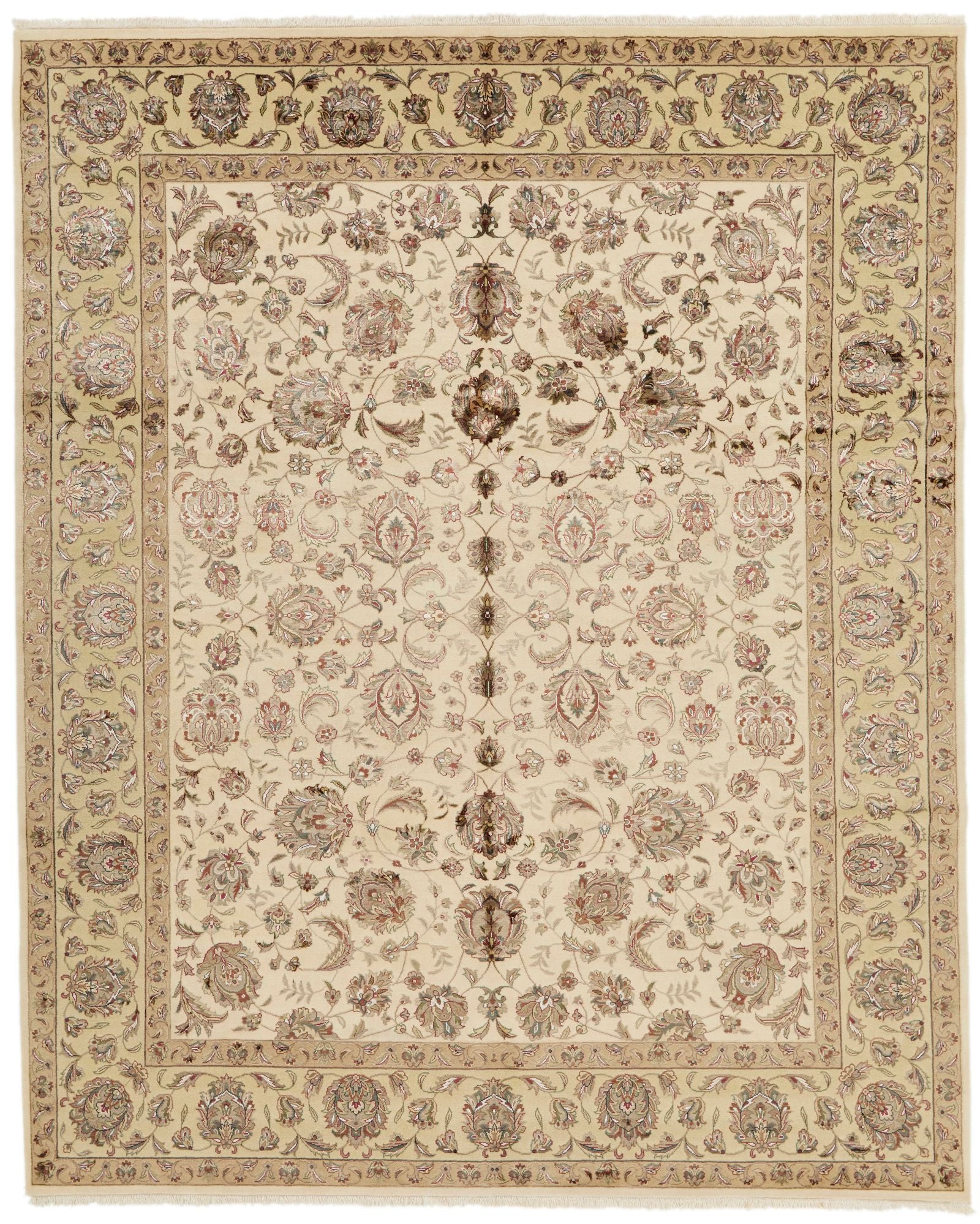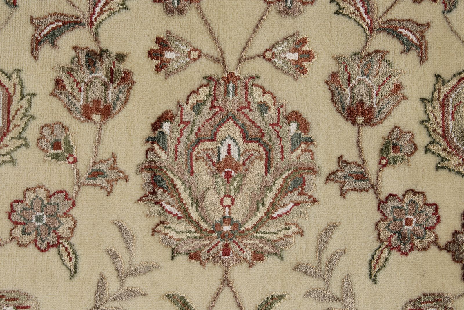 8x10 Ivory and Gold Turkish Silk Handknotted Wool Vintage Design Turkish Rug Handmade Distressed Silk, Floral Rug