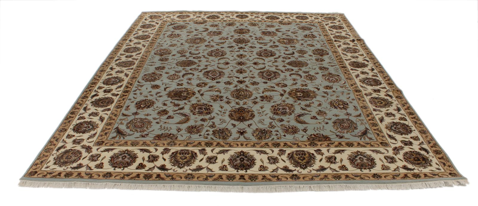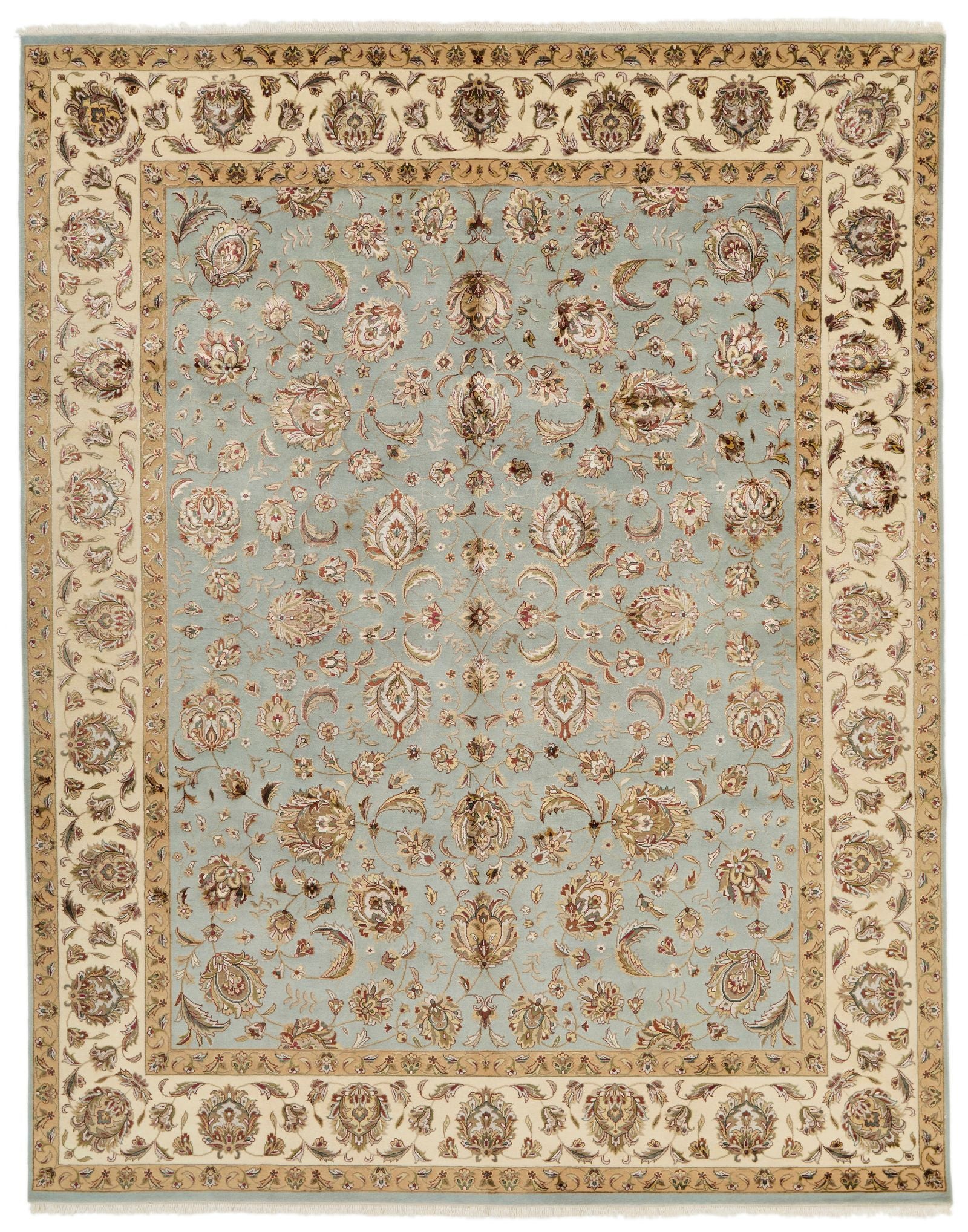 8x10 Light Blue and Ivory Turkish Silk Rug