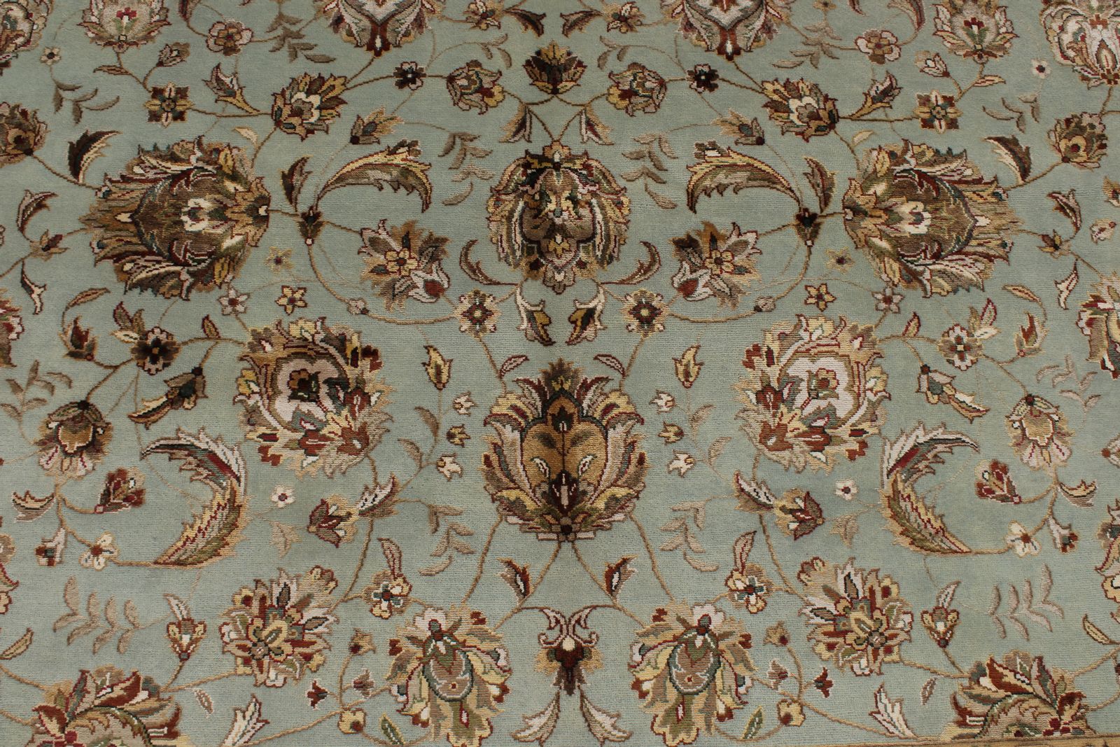 8x10 Light Blue and Ivory Turkish Silk Handknotted Wool Vintage Design Turkish Rug Handmade Distressed Silk, Floral Rug