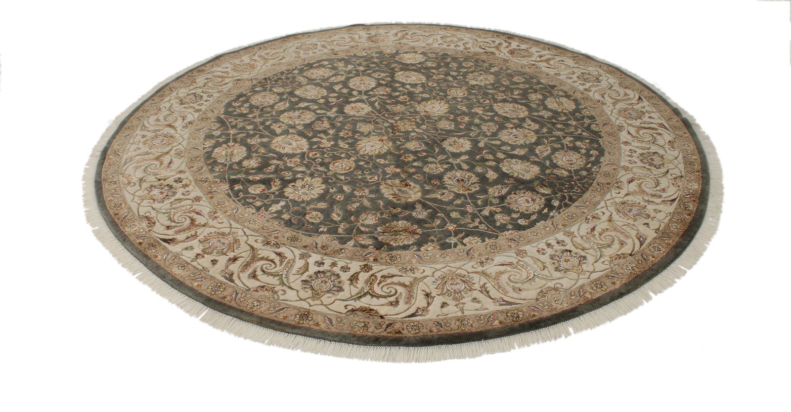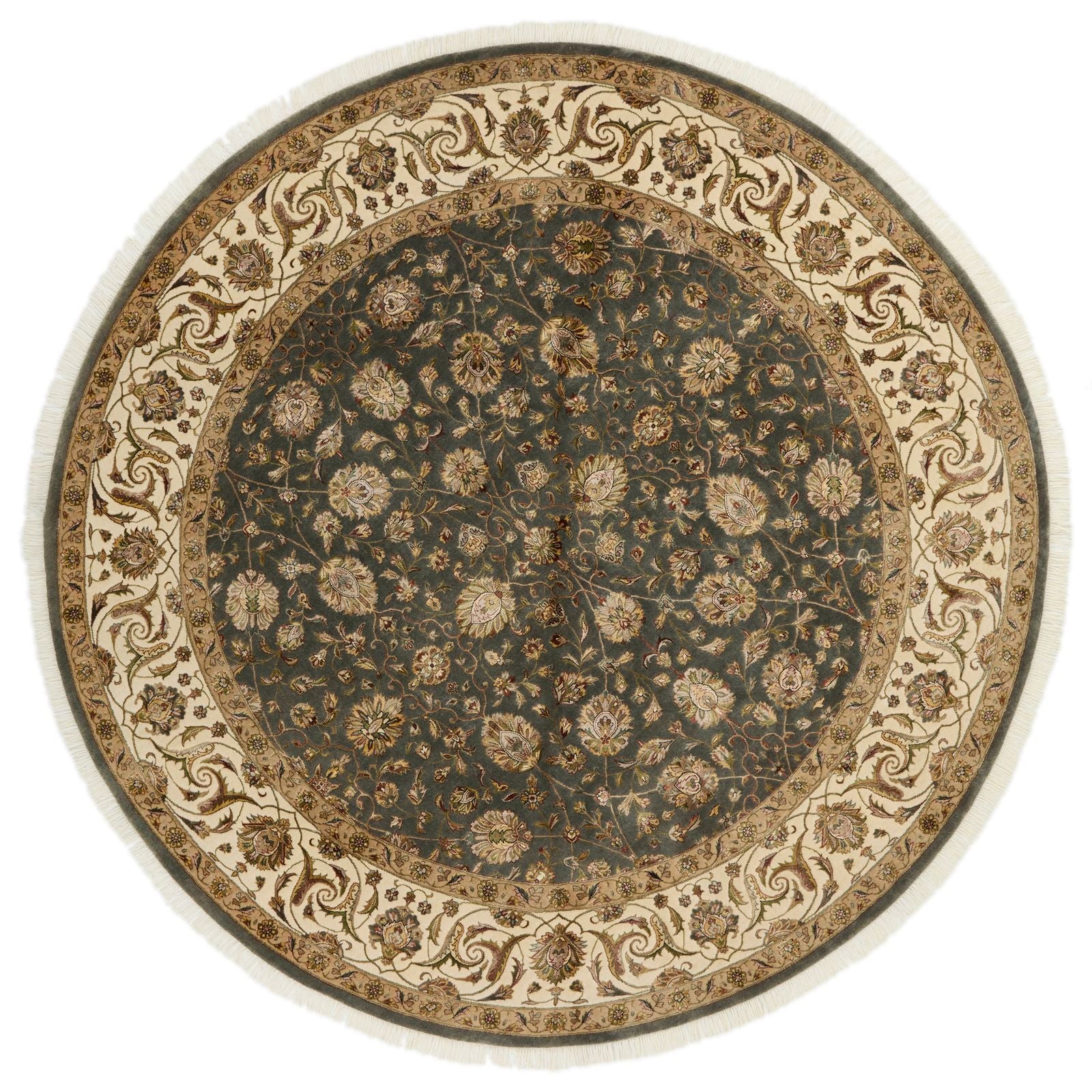 8x8 Gray and Ivory Turkish Silk Rug