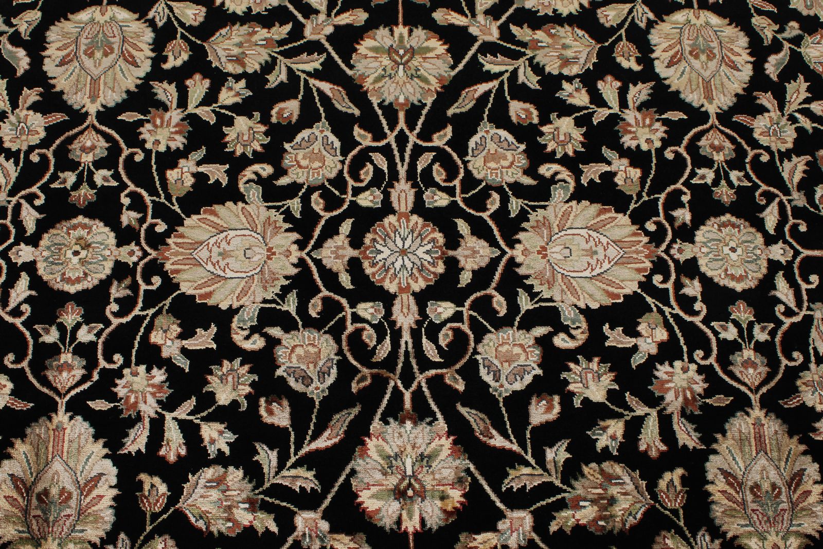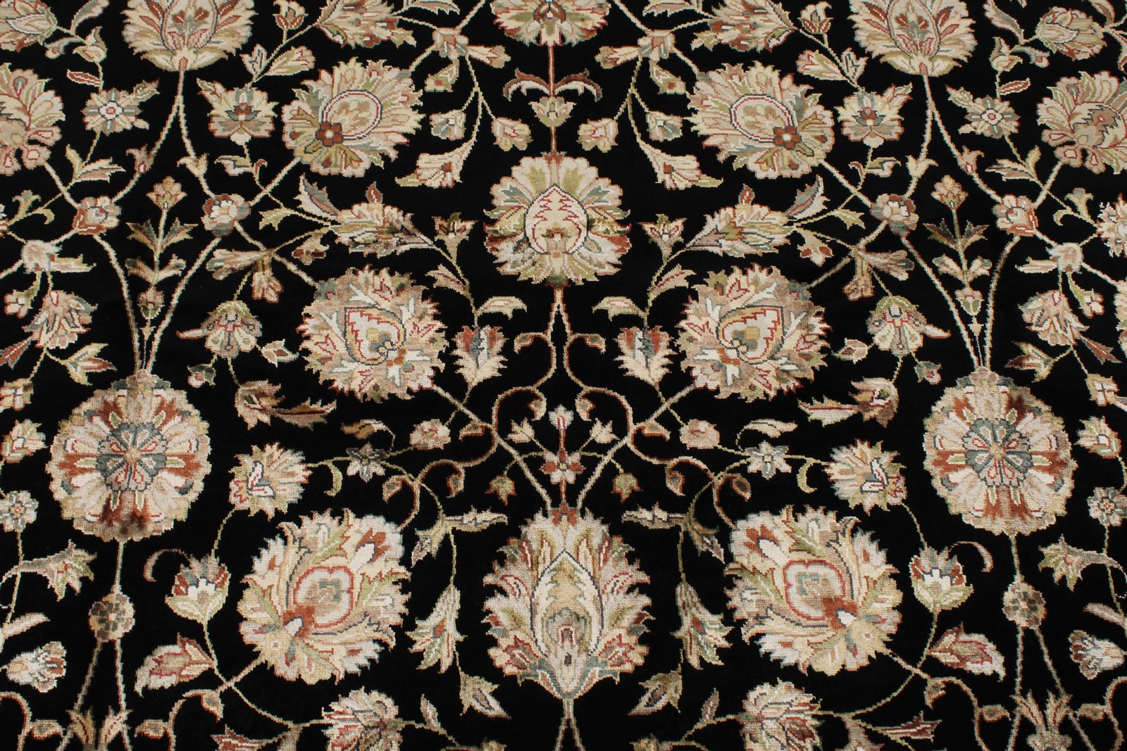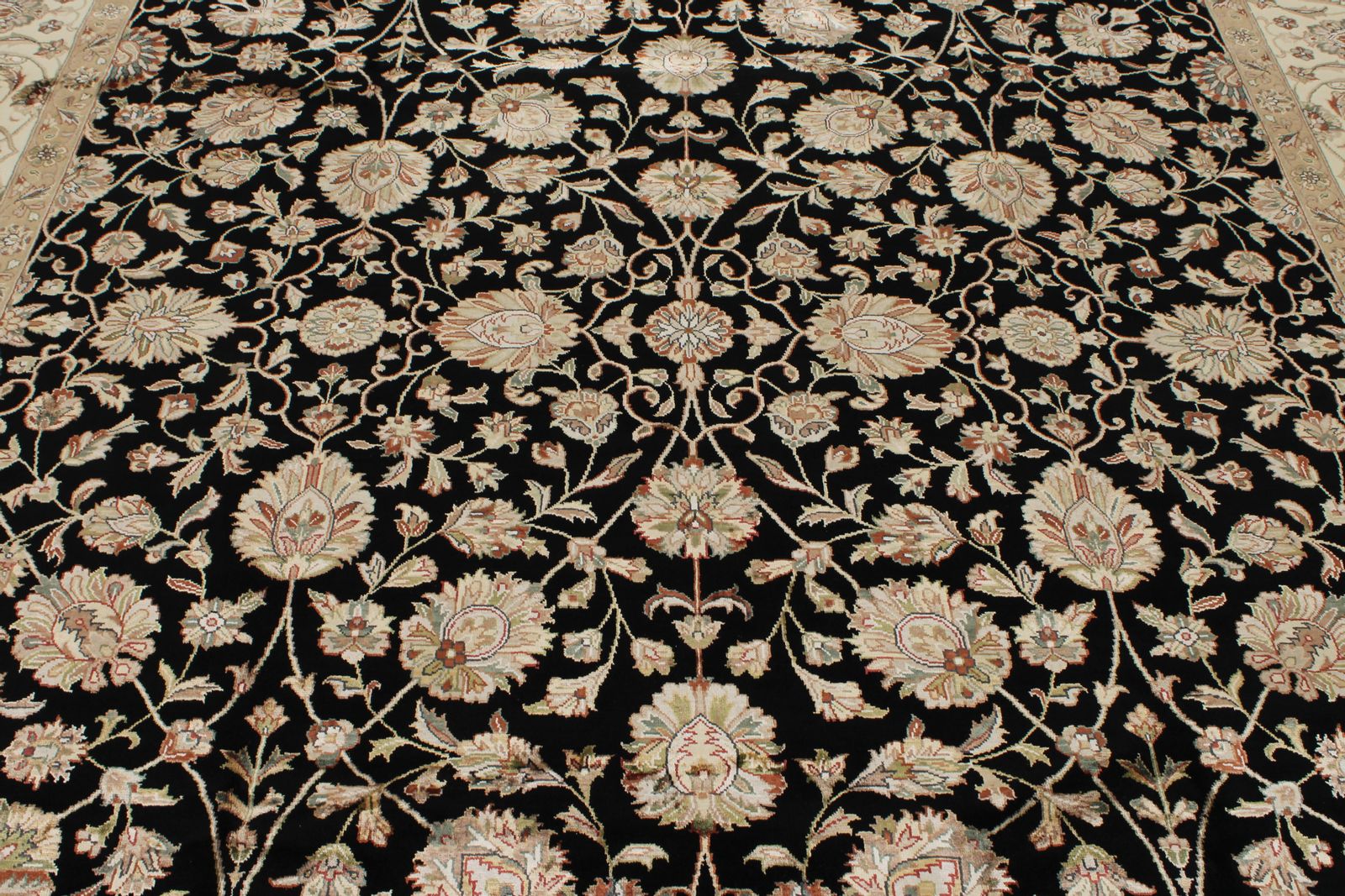 9x12 Black and Ivory Turkish Silk Handknotted Wool Vintage Design Turkish Rug Handmade Distressed Silk, Floral Rug