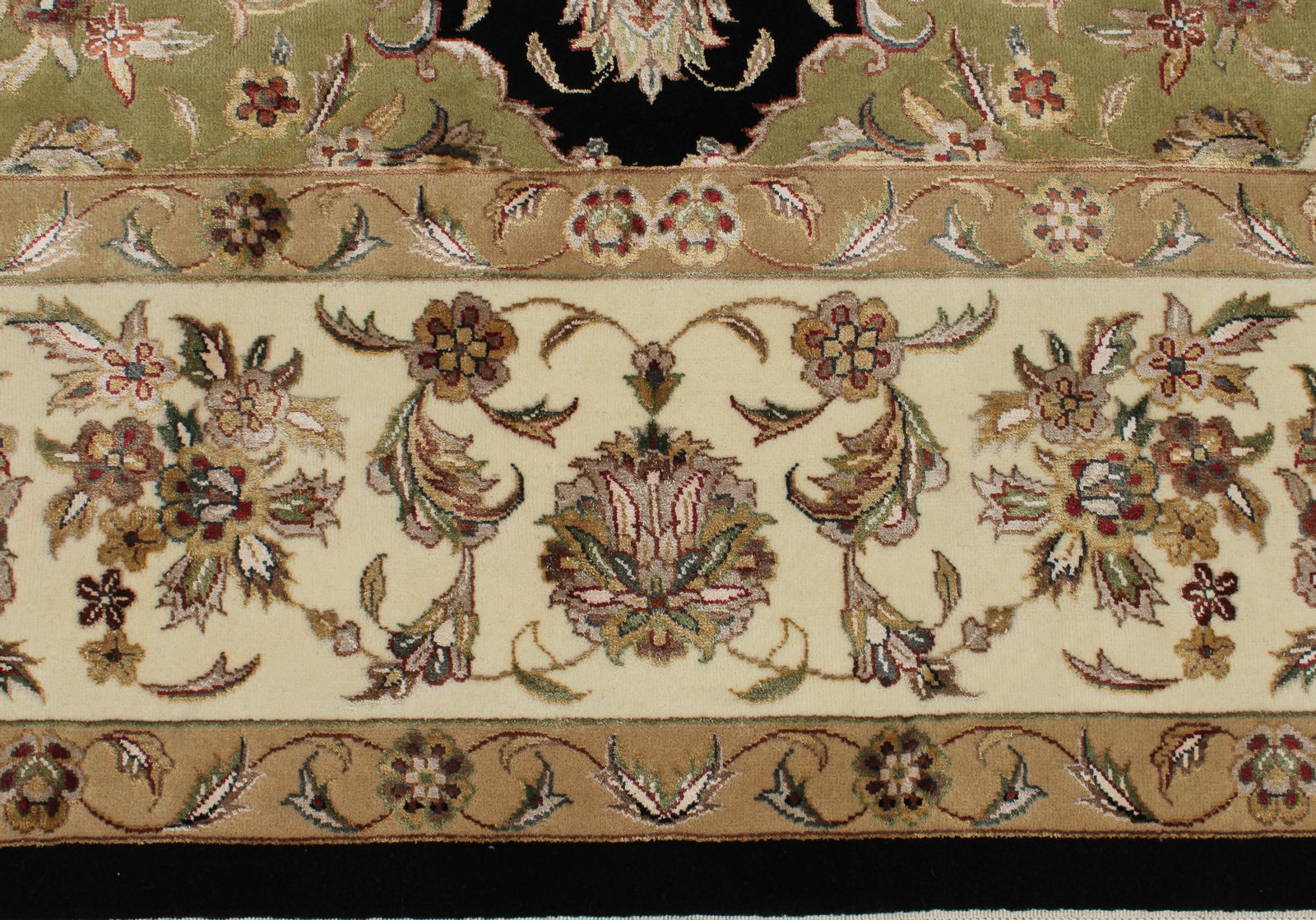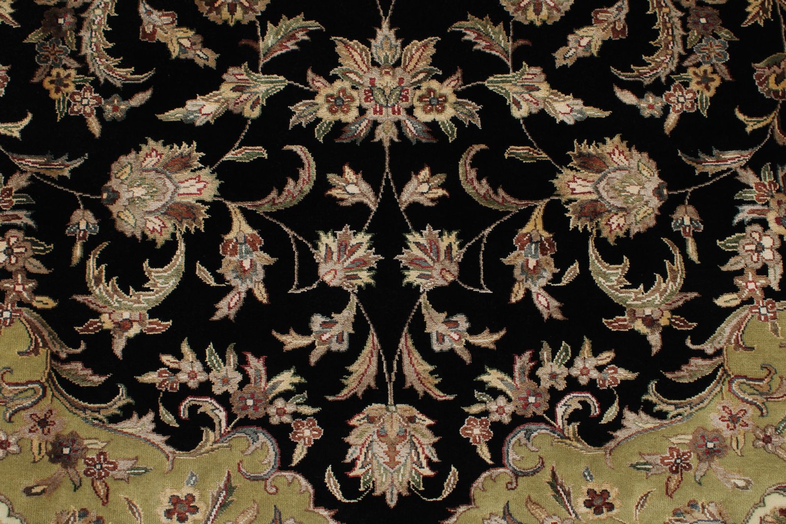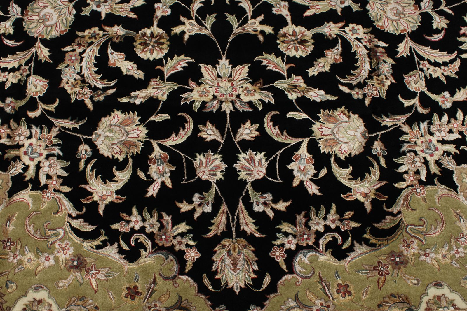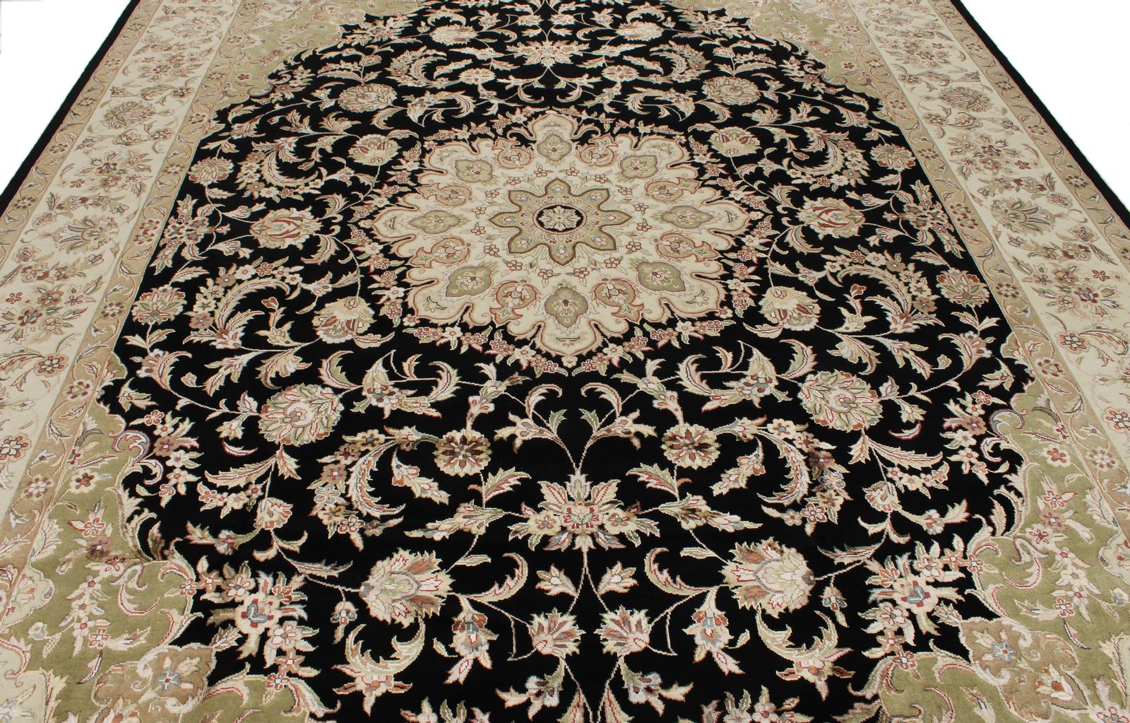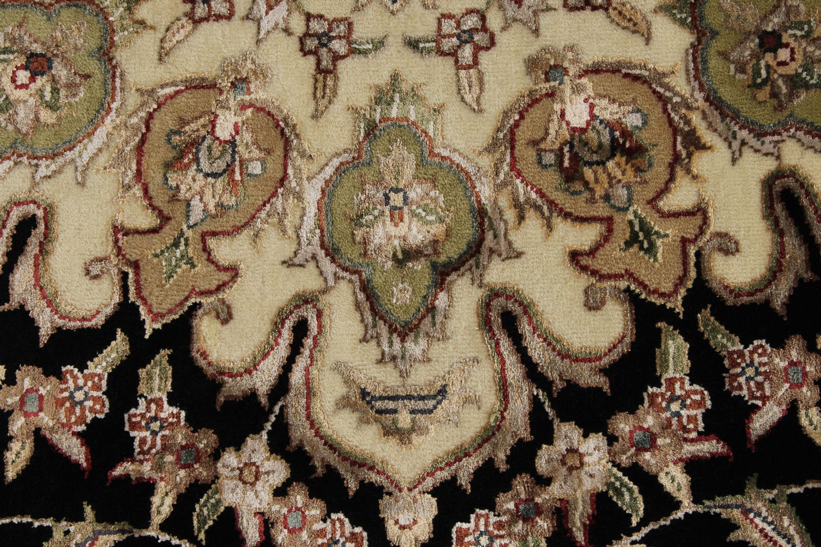 9x12 Black and Ivory Turkish Silk Handknotted Wool Vintage Design Turkish Rug Handmade Distressed Silk, Floral Rug