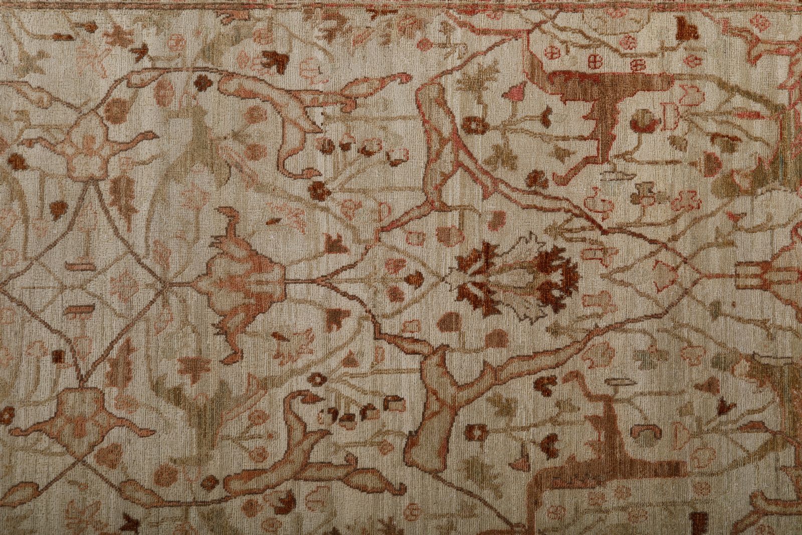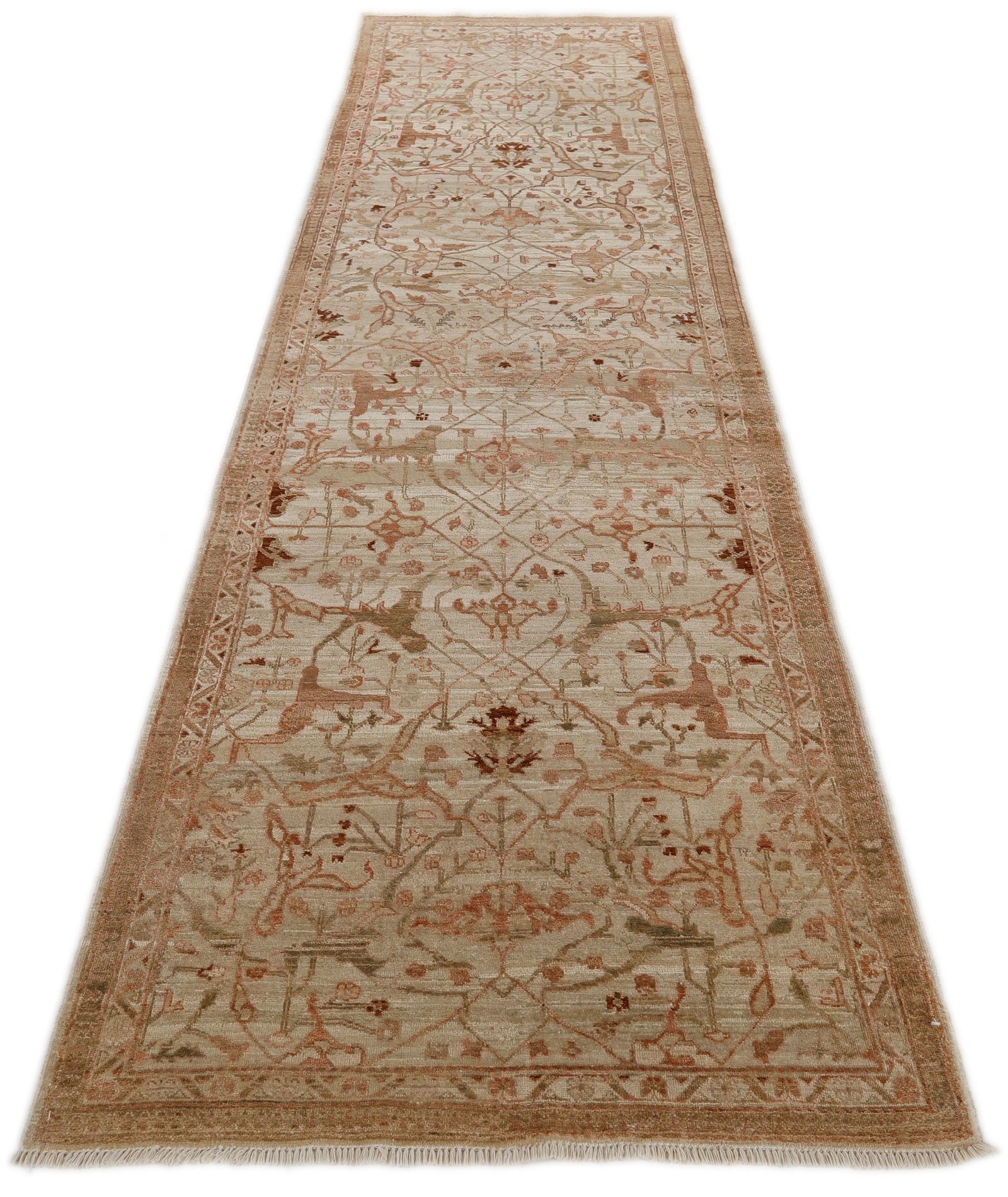 4x12 Ivory and Brown Anatolian Traditional Rug Handknotted Wool Vintage Design Turkish Rug Handmade Distressed Traditional, Floral Runner