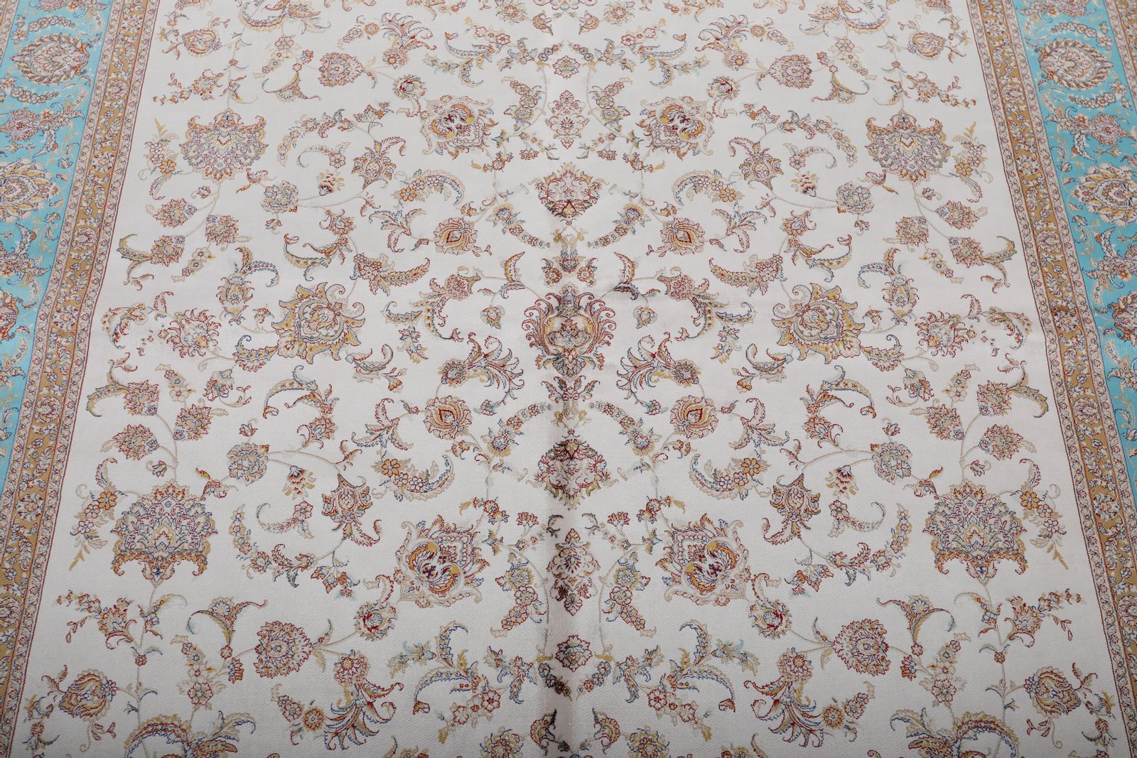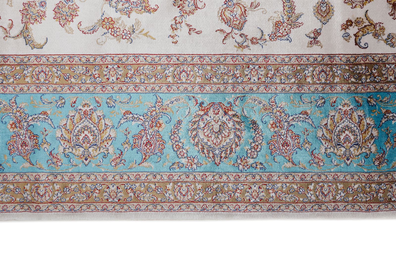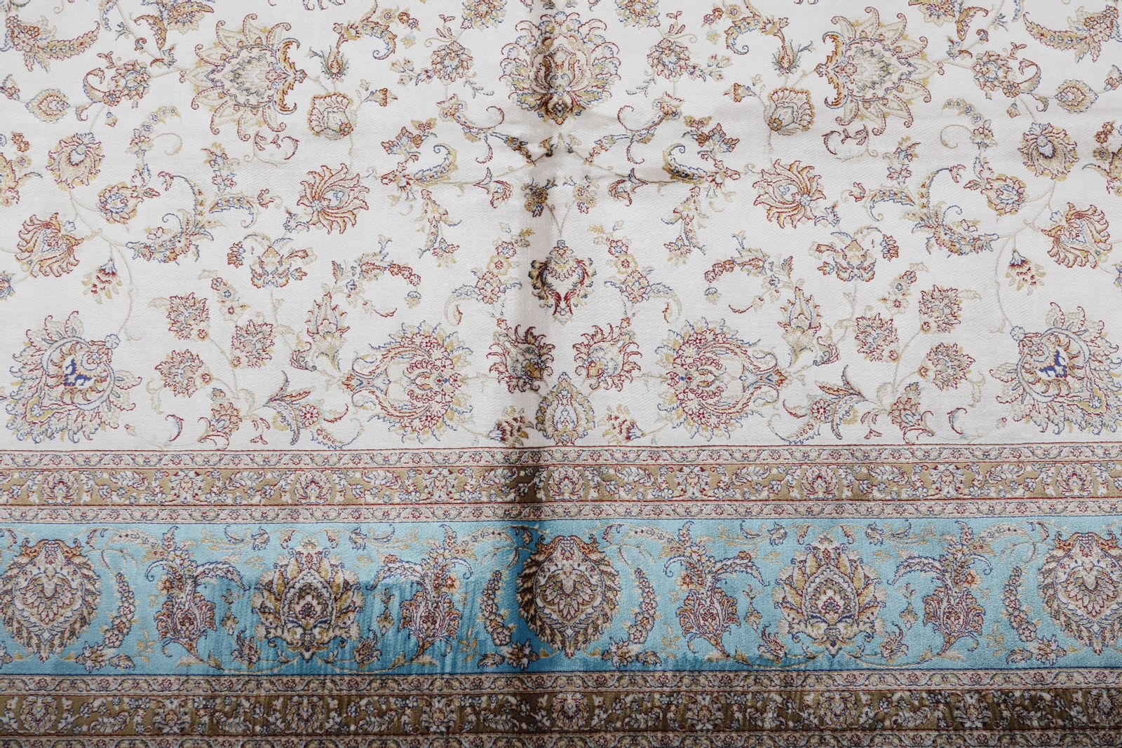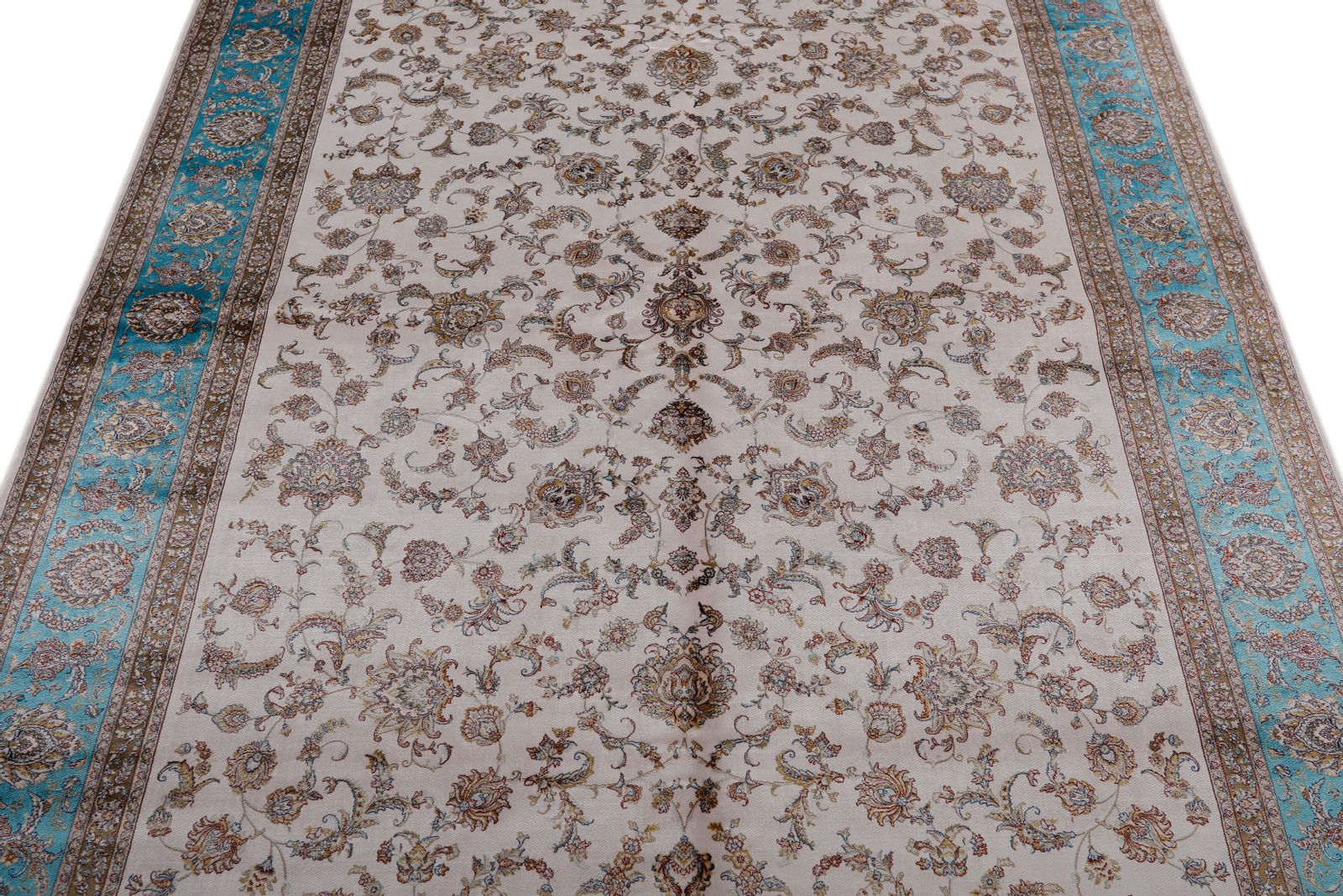 5x8 Ivory and Blue Turkish Antep Handknotted Wool Vintage Design Turkish Rug Handmade Distressed Silk, Floral Runner